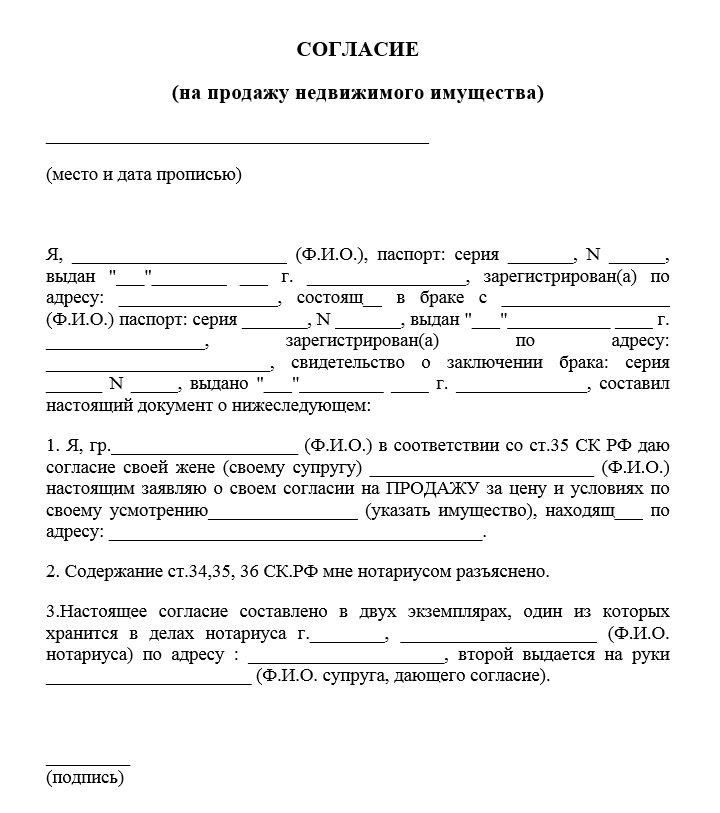 - Если продавец состоит в браке, то разрешение супруга/супруги на продажу объекта недвижимости.